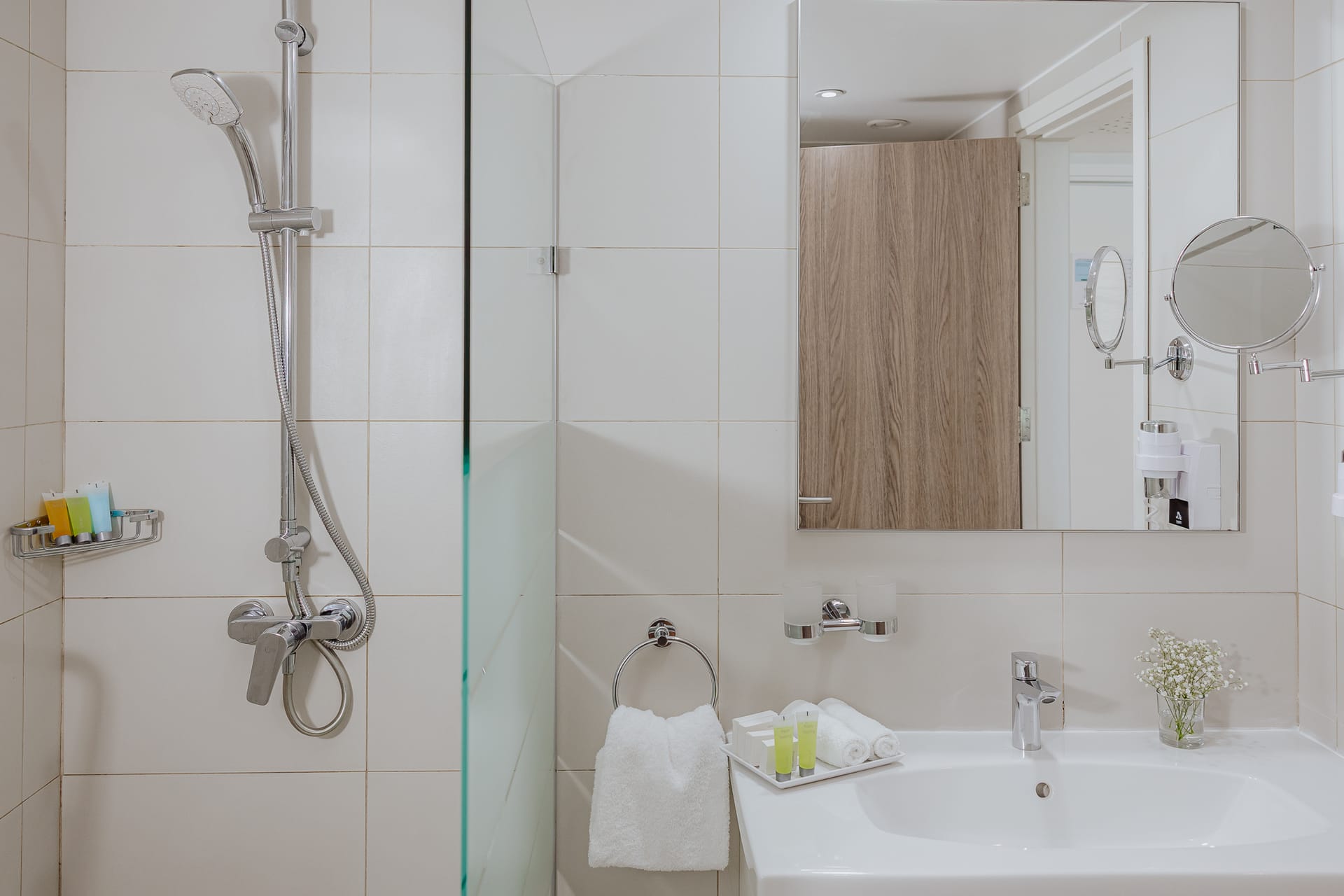 Every room is fully airconditioned and has central heating, private walk-in rain showers and WC, direct dial telephone, safety deposit box, tea & coffee making facilities, mini fridge, hairdryer and free WIFI.